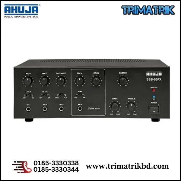 The Ahuja SSB-85FX 80W Medium PA Mixer Amplifier, the ultimate solution for powerful and crystal-clear sound in Bangladesh. Whether you are a professional speaker, musician or event organizer, this amplifier is designed to provide you with an enhanced audio experience. With its high-power output, versatile features and user-friendly controls, the Ahuja SSB-85FX is the perfect choice to make a lasting impact on your audience. Let’s delve into the exciting world of this amplifier and discover how it can transform your sound experience.